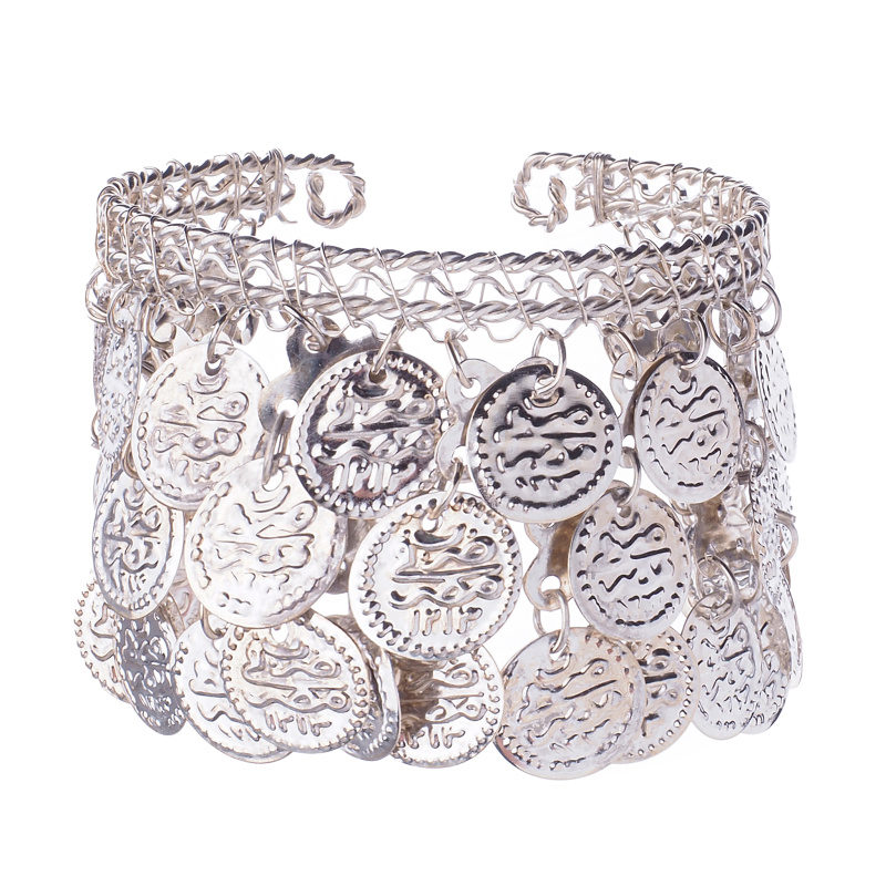 Very nice penny bracelet for belly dance Aria, adjustable size, colour silver