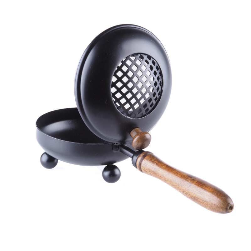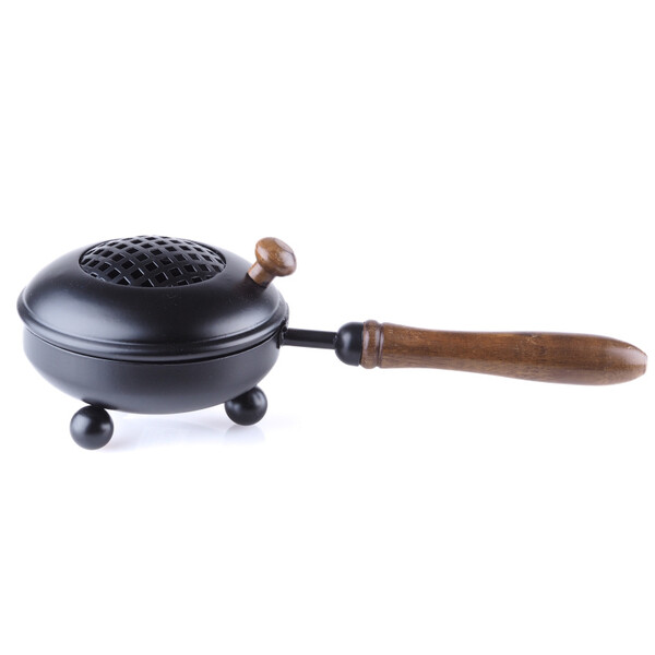 Censer with wooden handles are practical tools for burning incense and loose incense mixtures. Their handles are designed for safe placement or convenient transport. The grid on the top of the censer holds the incense and provides its protection.