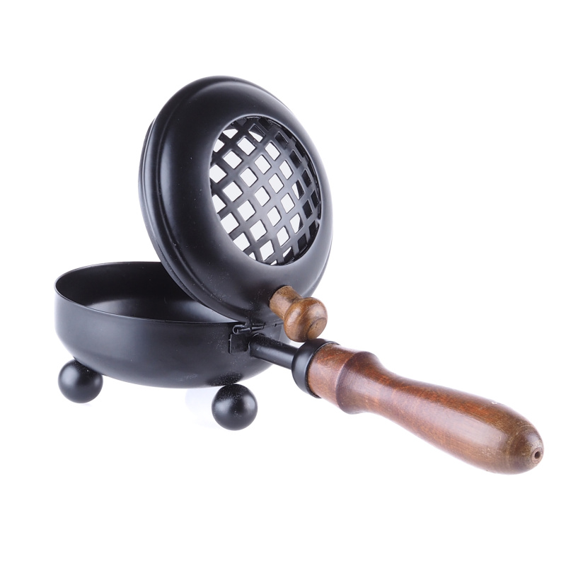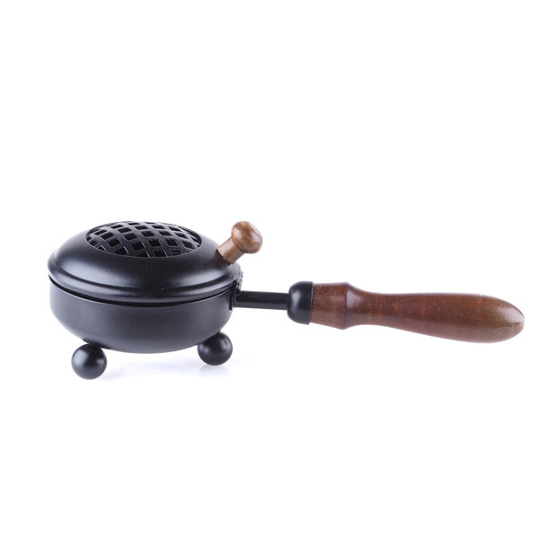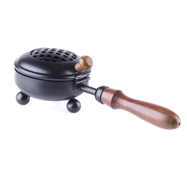 Censer with wooden handles are practical tools for burning incense and loose incense mixtures. Their handles are designed for safe placement or convenient transport. The grid on the top of the censer holds the incense and provides its protection.