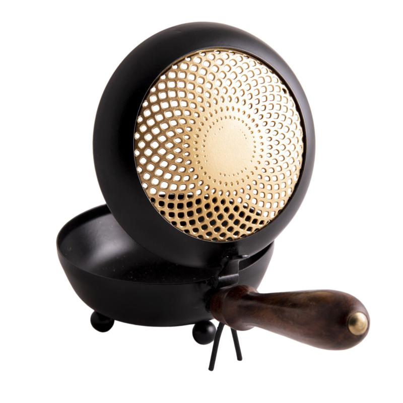 Censers with wooden handles are practical tools for burning incense and loose incense mixtures. Their handles are designed for safe placement or convenient transport. The beautifully shaped gold grid on the top of the censer holds the incense and provides its protection.