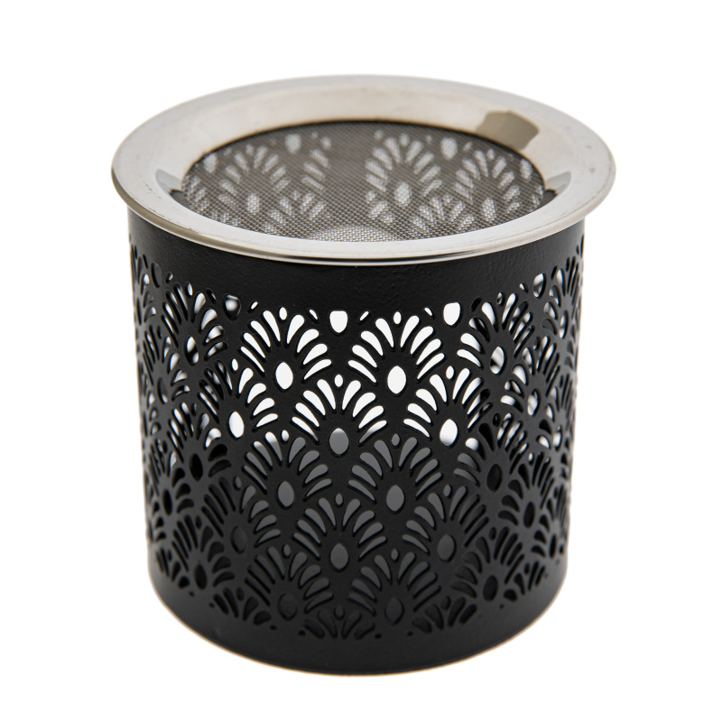 The metal incense burner with a sieve makes a really interesting accessory for burning incense, particularly herbs and loose incense mixtures. The ornament at the front adds an oriental touch, making it suitable for both modern and traditional interiors. This burner is suitable for slow and delicate burning, especially of herbs and loose incense mixtures.
