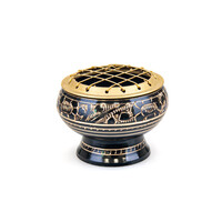 The metal censer in a nice golden colour, with decorative ornaments, serves as not only a nice oriental decoration, but also a practical companion for every lover of incense sticks, cones, ropes, or powders and resins.