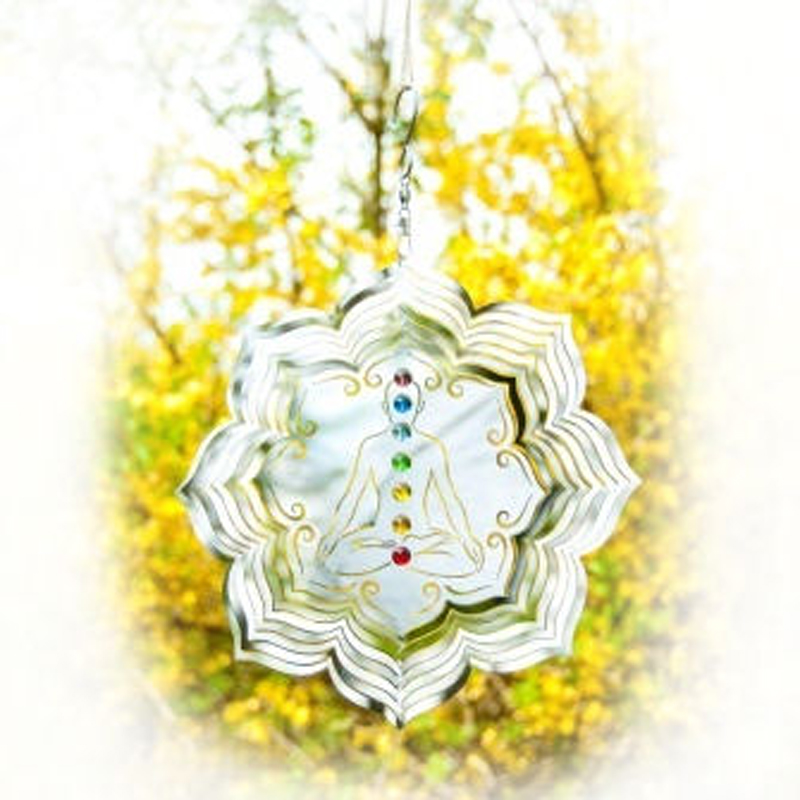 The hanging decoration, symbolizing the seven chakras in a lotus seat, will stir up the energy in any room. The enchanting effect created by the decoration will captivate any observer and draw them into the centre of a unique spectacle. The decoration is made of high-quality stainless steel, so it can also be used outdoors, for example on a terrace or in the garden.
