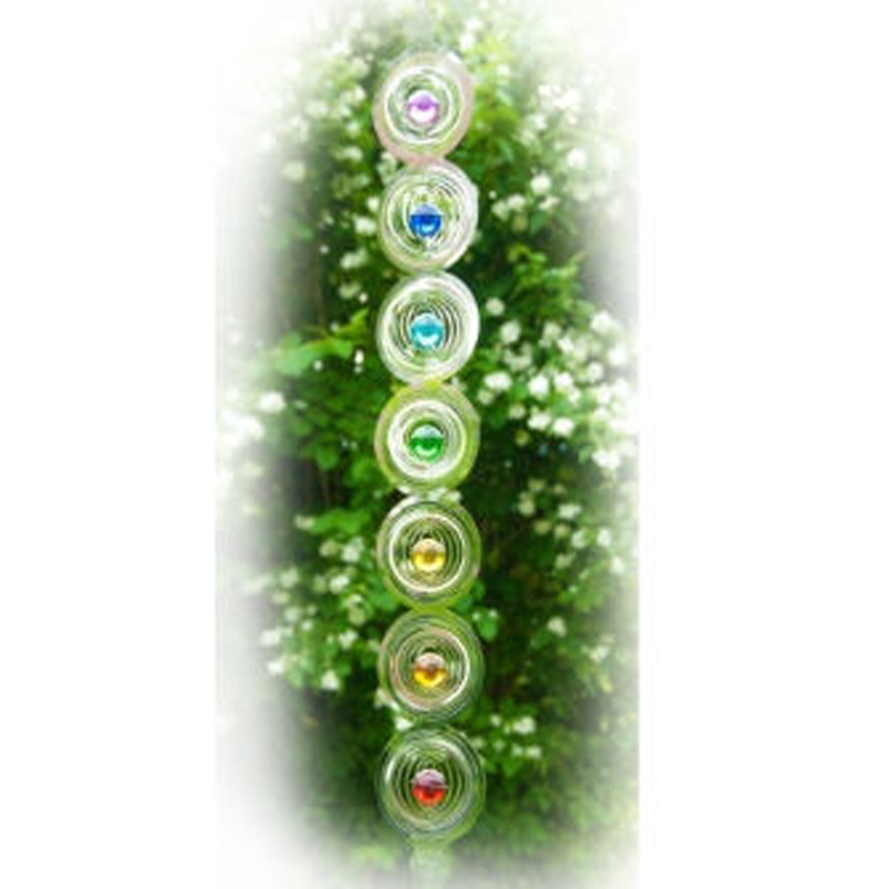 The hanging decoration, symbolizing the seven chakras, will stir up the energy in any room. The enchanting effect created by the decoration will captivate any observer and draw them into the centre of a unique spectacle. The decoration is made of high quality stainless steel and can therefore be used outdoors, for example on a terrace or in the garden.