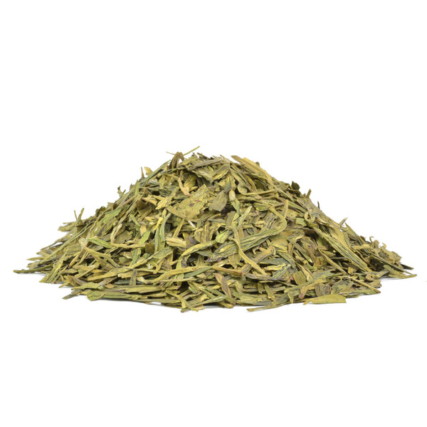 Chinese green tea Lung Ching - Dragon's Well is grown in Zhejiang province in China. The light to dark green leaves are shaped into smooth and long scales. The tea infusion is greenish-yellow. There is a long history and many legends attached to Dragon's Well, and it is often considered the best Chinese tea.