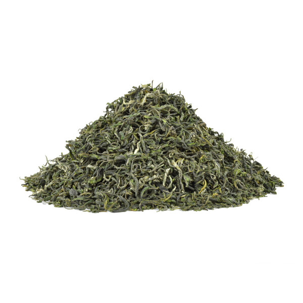 Chinese green tea genuine. It is grown in Jiangsu province in China. The grey-green tea leaves are picked in early spring from tea trees planted in peach, apricot and plum orchards, where they acquire a captivating fragrance. The infusion of the tea is greenish yellow.