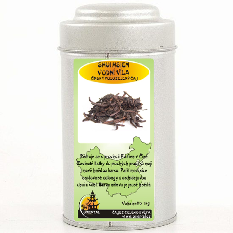 Shui Hsien- Water Fairy is an excellent Chinese semi-green tea (oolong) grown in the Fujian province of China. The leaves, wrapped in flat strips, are dark brown in colour. It is one of the more oxidized oolongs with an orchid-like flavour and aroma. The colour of the infusion is bright brown.