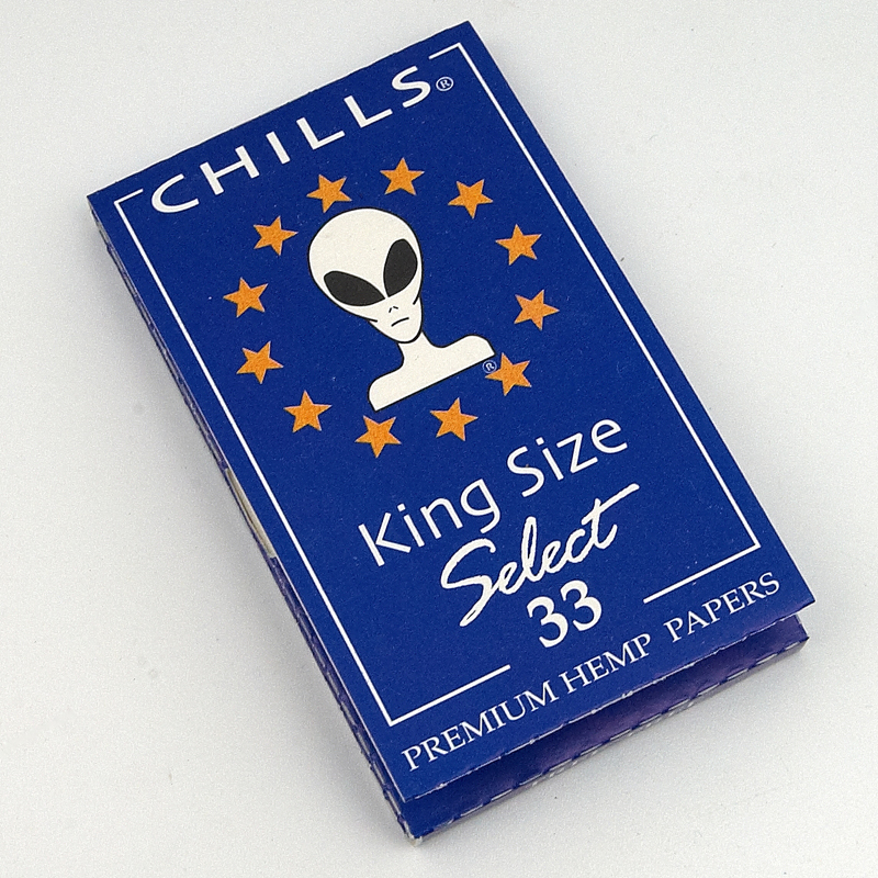 Each booklet of Chills Select King Size papers contains 33 sheets of papers. Chills Select King Size Cigarette Papers have a natural Arabic gum adhesive and are characterized by a slow burn.