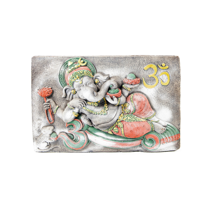 Decoration like a Thai temple. A huge concrete slab with detailed carvings of the Hindu god Ganesha turns any place into a shrine.