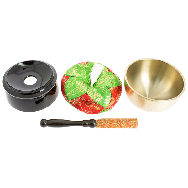 The Dharma Bell is similar to the Tibetan bowls - a singing bowl that sounds at the beginning and end of meditation. It rings in the same way as its relative the keizu bell (also called Daitakuji after a major Japanese Buddhist temple), sounding during sutra readings and daily ceremonies. The bell is sounded by striking the edge of the bell with a mallet, trying to find the right place and angle to get the clearest sound. Its deep resonant tone helps to calm the mind and find inner harmony.