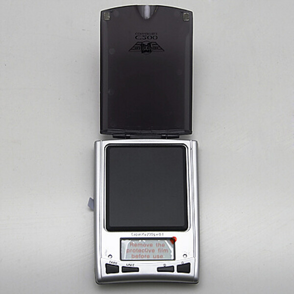Accessories(included): 3+1 interchangeable covers, calibration weight, scoop, tweezers, leatherette case, battery.