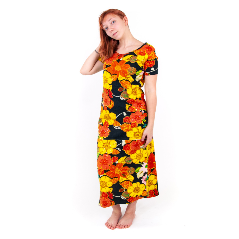 Simply cut from cotton ribbed knit, this dress will win you over with its vibrant colourful patterns and ensure total comfort on summer days.