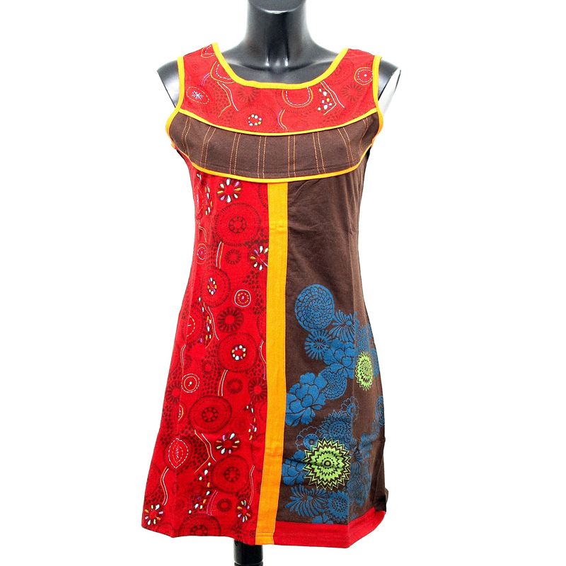 Multicoloured dress Joy 01 in red-brown, size XL