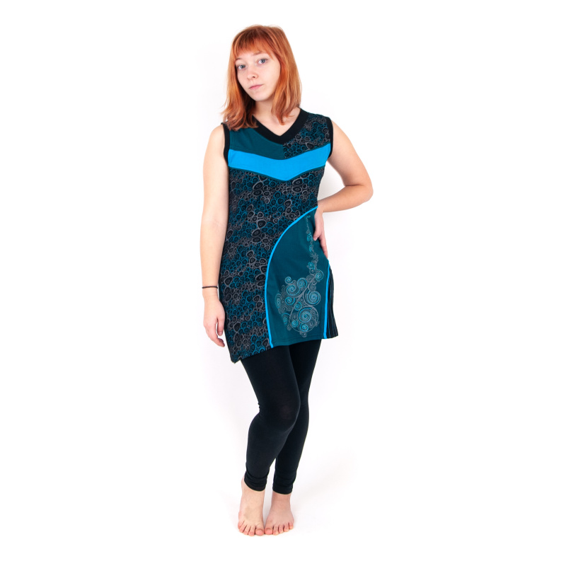 Black and turquoise Nepalese dress Joy 02 with striking motifs, size M