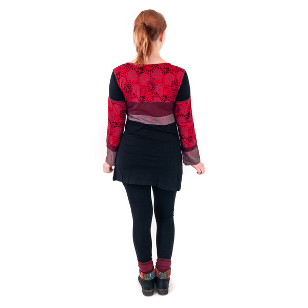Patterned Nepalese dress Joy 16 in red-grey, size XL