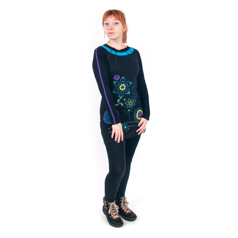 Nepalese floral dress with long sleeves Joy 17 in black, size M
