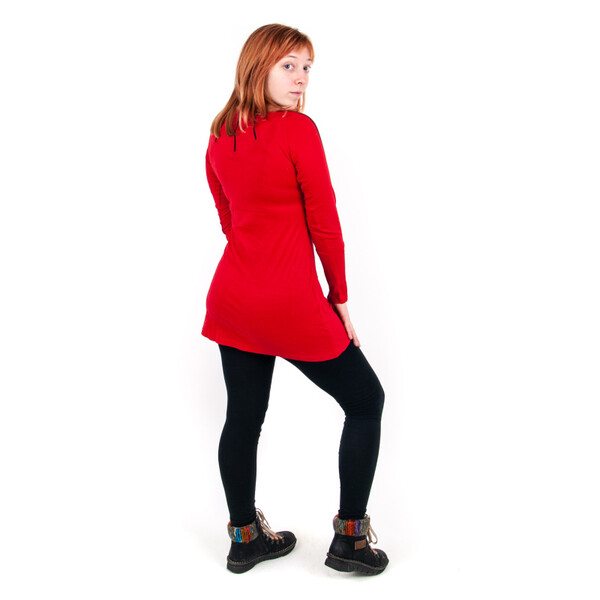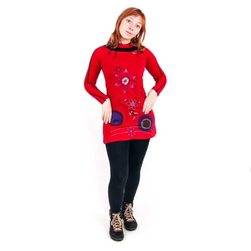 Nepalese floral long sleeve dress Joy 17 in red, size XL