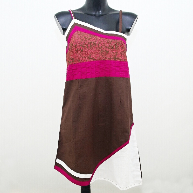 Interestingly asymmetrically cut and decorated short dress Sanjana, thin straps, size XL, pink brown