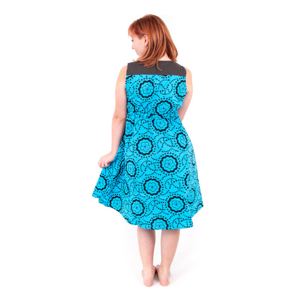 This comfortable dress made of airy cotton canvas in a wrap look is the right outfit for hot summers. The original design, not dissimilar to the well-known Desigual brand, the bright colours and the comfortable loose fit with a drawstring to shape the silhouette will win you over immediately.