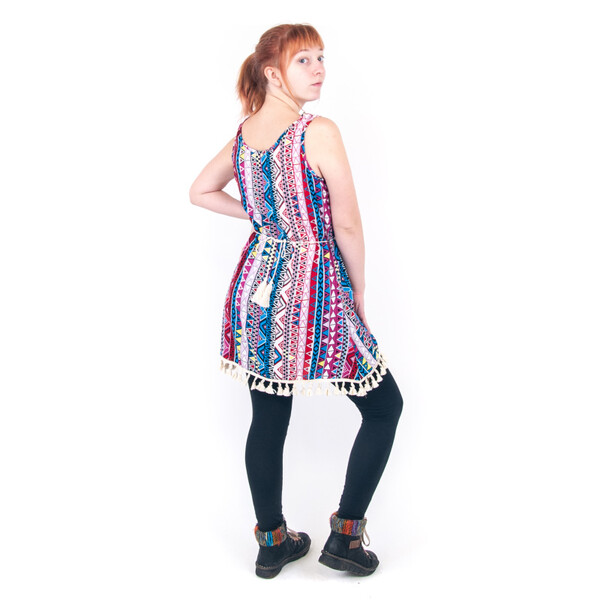 They have geometric shapes and wider straps. They have a thin drawstring waist and a fringed hem. They have a comfortable material (viscose) and playful summer colours. The Sunee 04 dress has the missing piece you need to be totally irresistible on those sultry days.