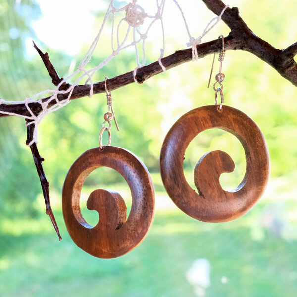 Beautiful wooden earrings handmade on the Indonesian island of Bali. Multiple earring designs are available, please let us know your request for a specific design in the order note.