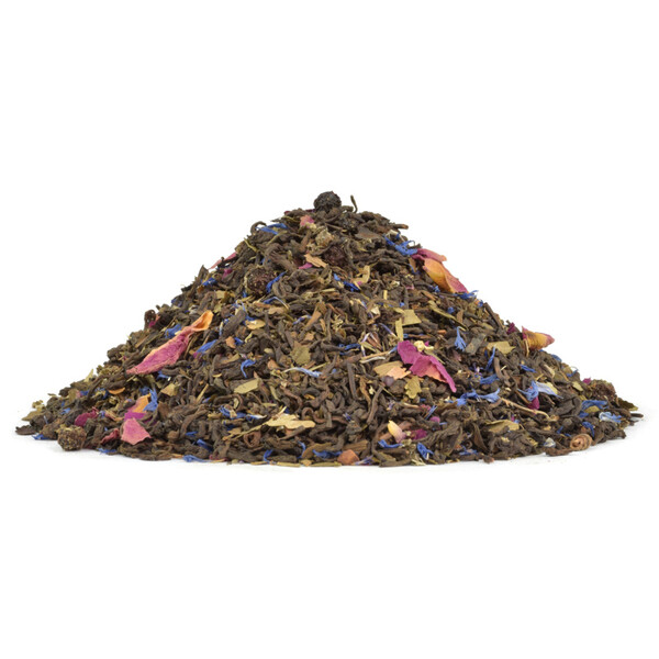 A blend of strong Pu Erh black tea with herbs and fruits.