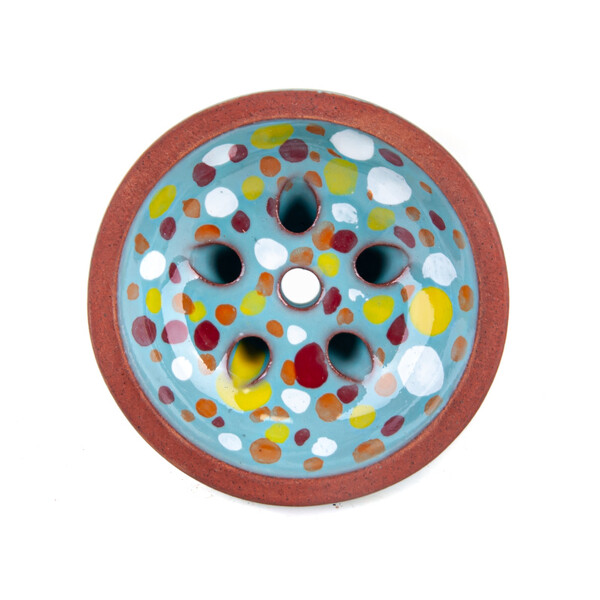 The bowl is Turkish-style with five holes. It has thick walls and a rounded shape, ensuring even heat distribution.