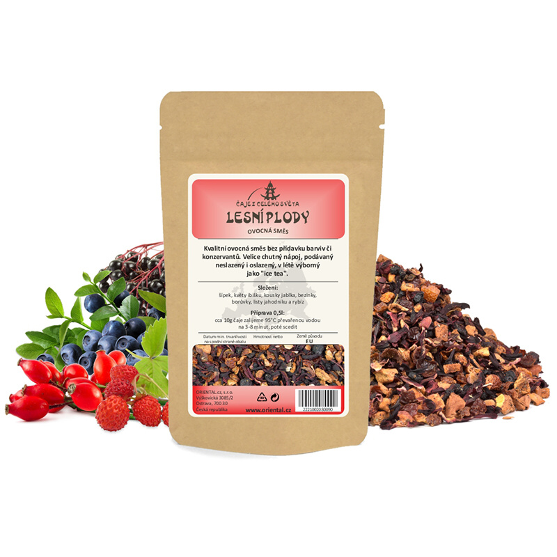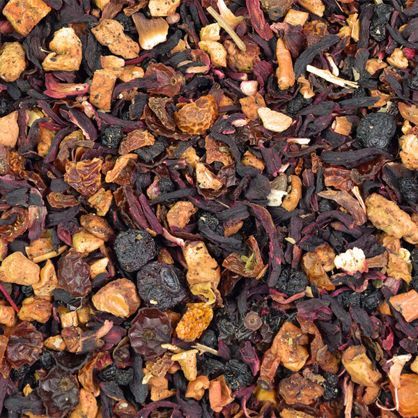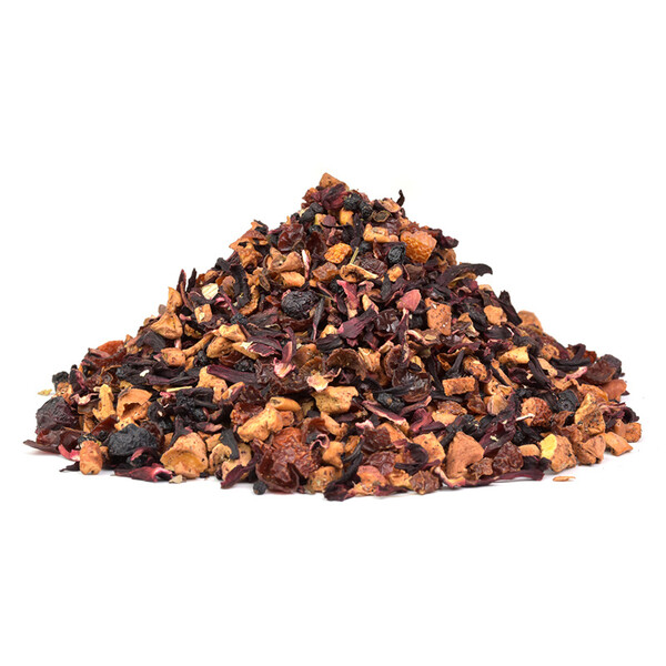 Ingredients: rosehips, hibiscus flowers, apple pieces, elderberries, blueberries, strawberry and currant leaves. High-quality fruit mixture without added colorants or preservatives.
