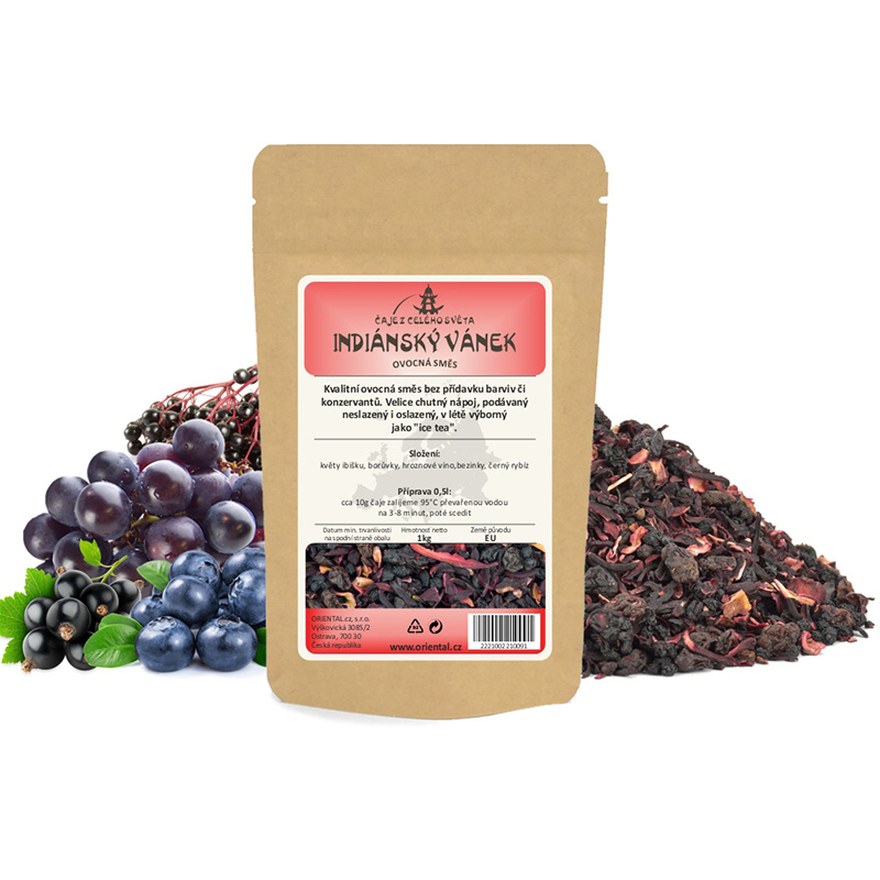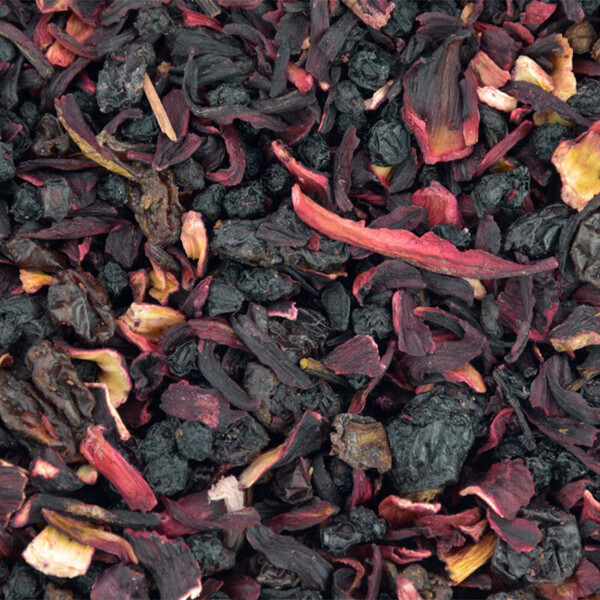 A substitute for popular fruit teas. Excellent for children when we do not want tein, also as a refreshment. Ingredients - hibiscus flowers, blueberries, grapes, elderberries, blackcurrants. High quality fruit blend without added colourings or preservatives. A very tasty drink, served unsweetened or sweetened, in summer excellent as "ice tea".