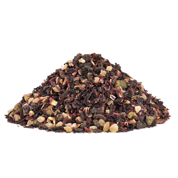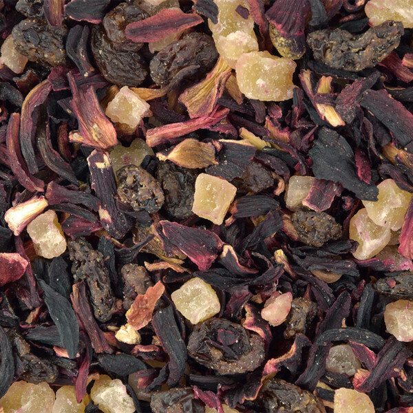 Ingredients: hibiscus flowers, banana and cherry pieces, candied pineapple, grapes. High quality fruit blend with no added colorants or preservatives.