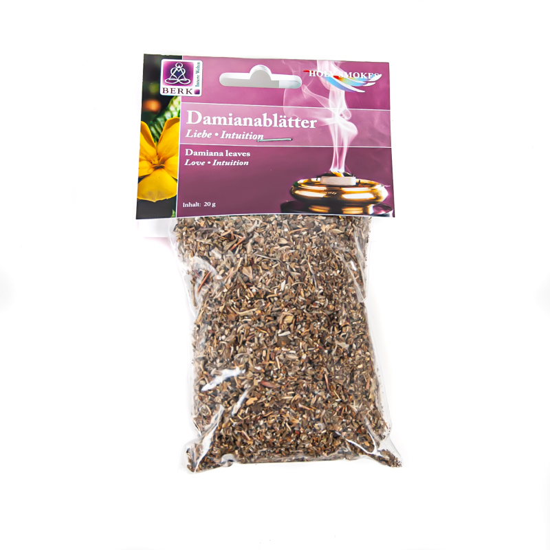 Thanks to its sweet, aphrodisiac aroma, damiana has always been attributed to its connection with Venus. In South America, it has always been an integral part of various love potions. When burned, it creates a joyful, euphoric atmosphere full of love. Ideal in combination with copal or cinnamon.
