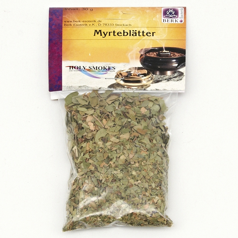 The sweet aroma of myrtle leaves is sanctifying and leaves an uplifting mood when burned. Myrtle is dedicated to the goddess of love, Aphrodite. It symbolizes love and purity. With its evergreen leaves, myrtle represents the indestructibility of the soul.