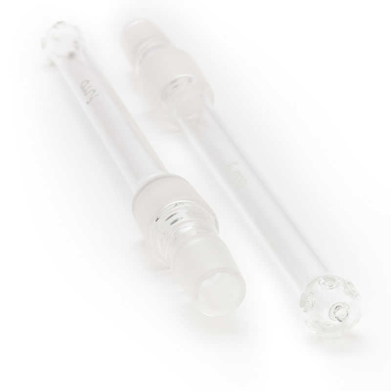 The glass downstem acts as a pipe through which the smoke flows. It is topped with an integrated diffuser for better cooling of the smoke and to reduce the noise of bubbling water. There are three vortex-style holes on the top to provide more airflow to the bowl, and thus more even heating of the tobacco. A glass baffle provides the tightest connection between the downstem and the hookah.