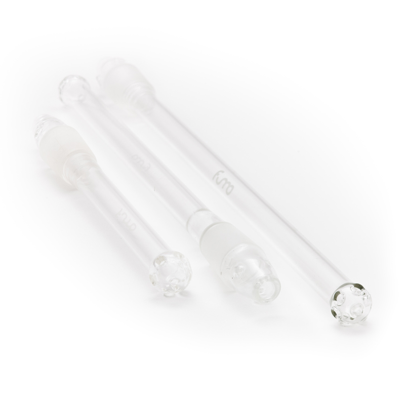 The glass downstem acts as a pipe through which the smoke flows. It is topped with an integrated diffuser for better cooling of the smoke and to reduce the noise of bubbling water. There are three vortex-style holes on the top to provide more airflow to the bowl, and thus more even heating of the tobacco. A glass baffle provides the tightest connection between the downstem and the hookah.