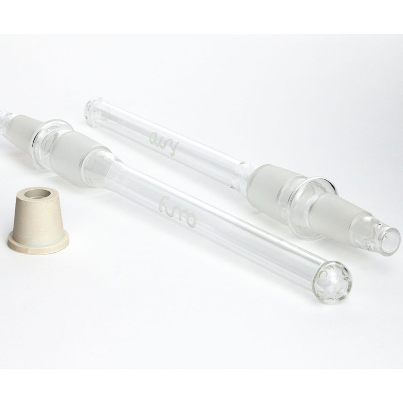 The Fruithead downstem, like a regular downstem, acts as a pipe through which the smoke flows. In addition, it also serves as the basis for the so-called fruithead, a bowl made of fruit (e.g. apple, orange, pineapple). The downstem can also be used as an adaptor for other bowlsthan those offered by the manufacturer after fitting the included gasket.