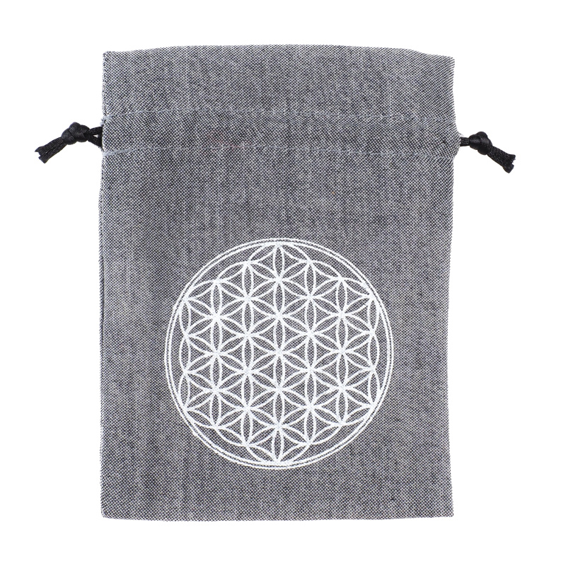 Present a small token of appreciation tucked in the Gifty gift pouch, and your loved one will receive two gifts in one. Made from soft yet durable cotton in an elegant, soft grey color, it is adorned with the charming Flower of Life design. It closes with a drawstring—simply pull both ends and tie a bow.