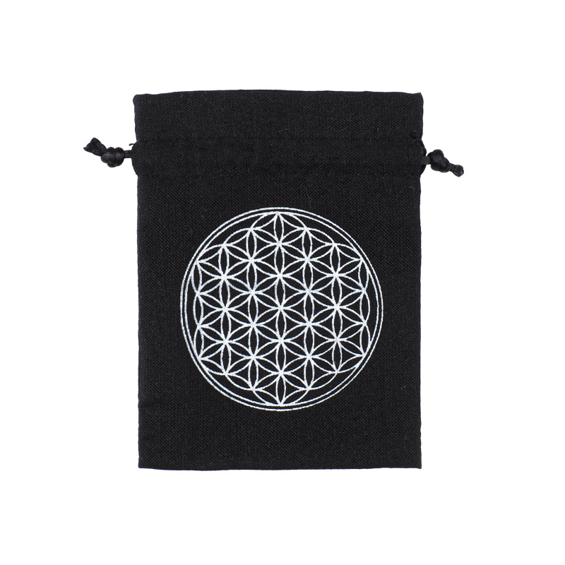 Present a small token of appreciation tucked in the Gifty gift pouch, and your loved one will receive two gifts in one. Made from soft yet durable cotton in a mysterious black color, it is adorned with the charming Flower of Life design. It closes with a drawstring—simply pull both ends and tie a bow.