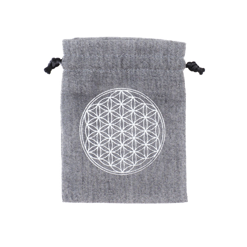 Present a small token of appreciation tucked in the Gifty gift pouch, and your loved one will receive two gifts in one. Made from soft yet durable cotton in a soft grey color, it is adorned with the charming Flower of Life design. It closes with a drawstring—simply pull both ends and tie a bow.