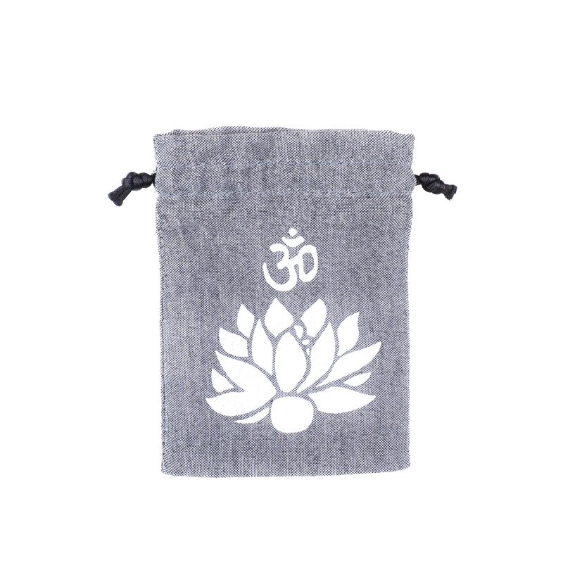 Present a small token of appreciation tucked in the Gifty gift pouch, and your loved one will receive two gifts in one. Made from soft yet durable cotton in an elegant, soft grey color, it is adorned with the charming motif of the Om symbol and a lotus flower. It closes with a drawstring—simply pull both ends and tie a bow.