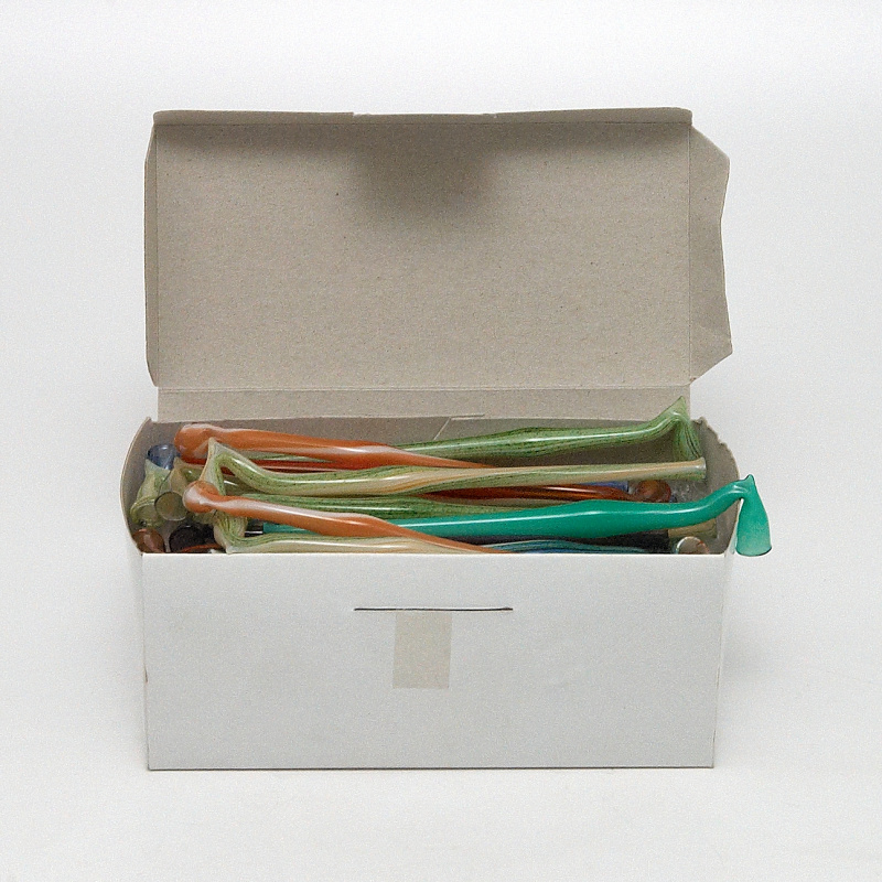 Longer, sharply curved glass jar with bubble on extended mouthpiece, 40 pcs, type coloured glass jar FT BOX 40 pcs