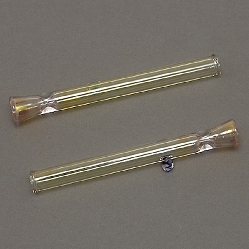 Simple clear glass bowl made of durable borosilicate pyrex glass with an expanded bowl and a ball to prevent melting from the table. The entire glass is lightly tinted yellow.