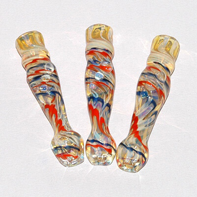 Excellent, highly durable pyrex borosilicate glass with narrowed mouthpiece. The glass is decorated with coloured stripes along its entire length