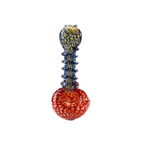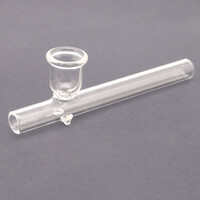 Excellent glass jar made of borosilicate glass with narrowed mouthpiece and kettle. The glass is coloured pink and the mouthpiece is decorated with a small coloured symbol