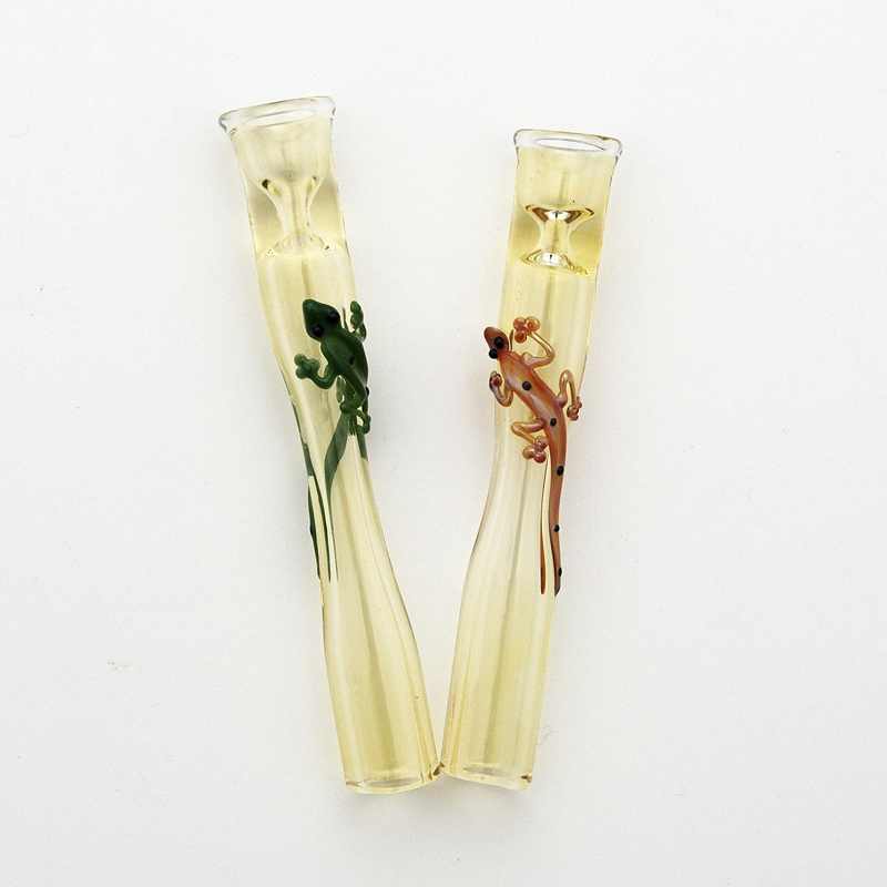 Excellent borosilicate glass flask with enlarged cauldron with narrowed mouthpiece. The glass has a colourful lizard decoration