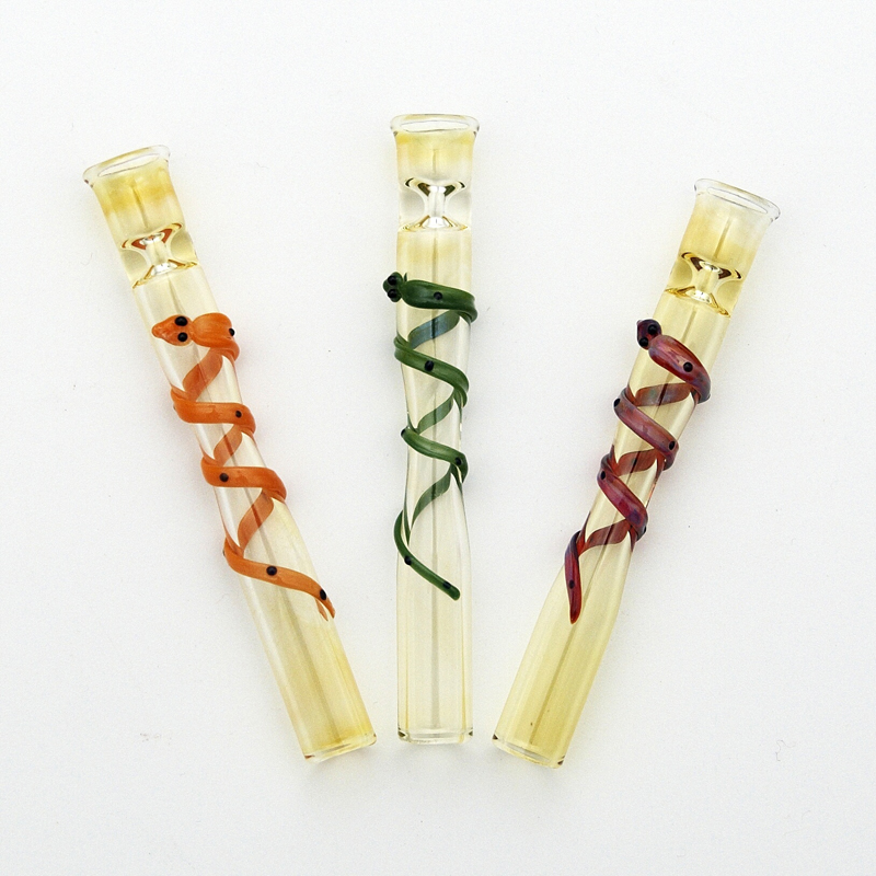 Bigger glass jar made of borosilicate glass with enlarged kettle and narrowed mouthpiece. The glass has a small colourful snake decorating the bowl.
