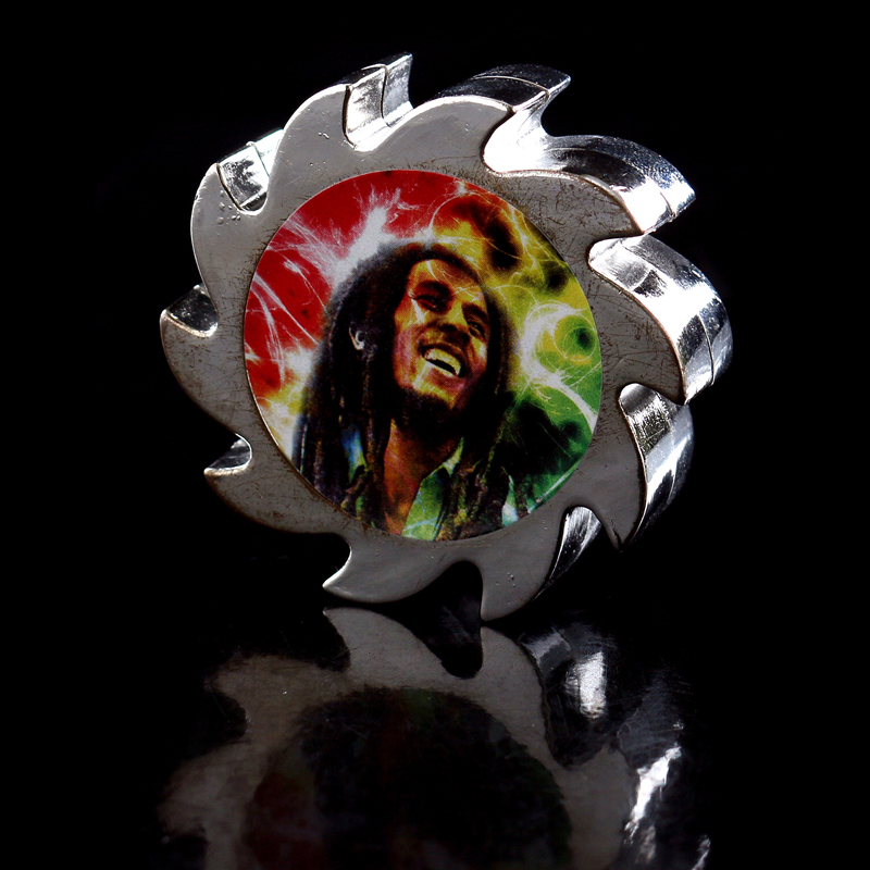 The miraculous Metal Cog Mix starfish with Bob Marley motif hides milled spikes. Twist the top or bottom a few times, and you're set.