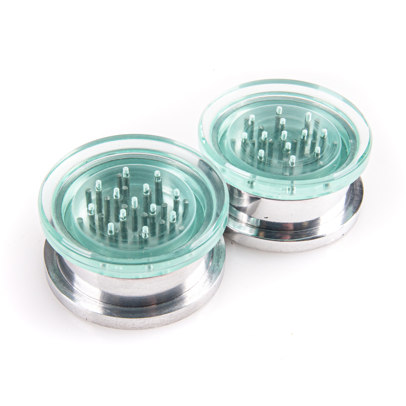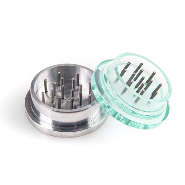 Handy plastic shredder with embedded metal tines. One part is made of plastic with embedded spikes, the other part is metal. There are different motifs of these shredders in our offer.