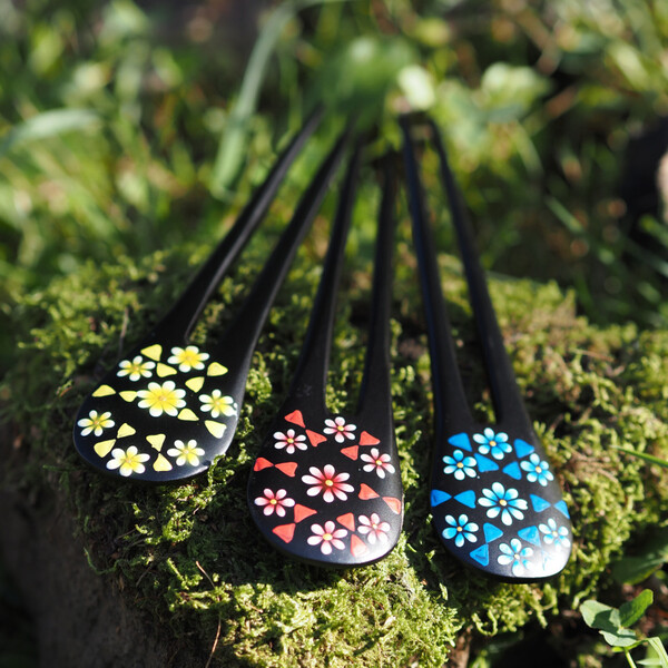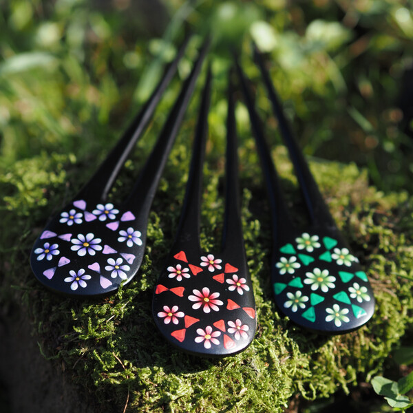 The high-quality processed wood will please every natural materials lover. Wooden hair accessories do not disrupt hair structure, have antistatic properties, and prevent breakage and damage. However, it is not recommended to expose them to moisture or use them on wet hair. It is recommended to occasionally treat the hairpin with a standard hand cream or a drop of olive oil to maintain its condition and restore its shine.