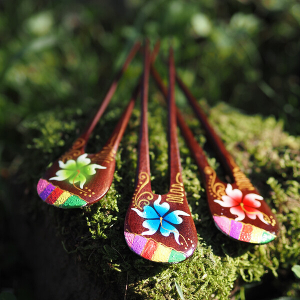 A unique hair accessory from the exotic island of Bali, handcrafted by local artisans. Each piece is unique in its details and in the flower design, which is inspired by the Indonesian flora.