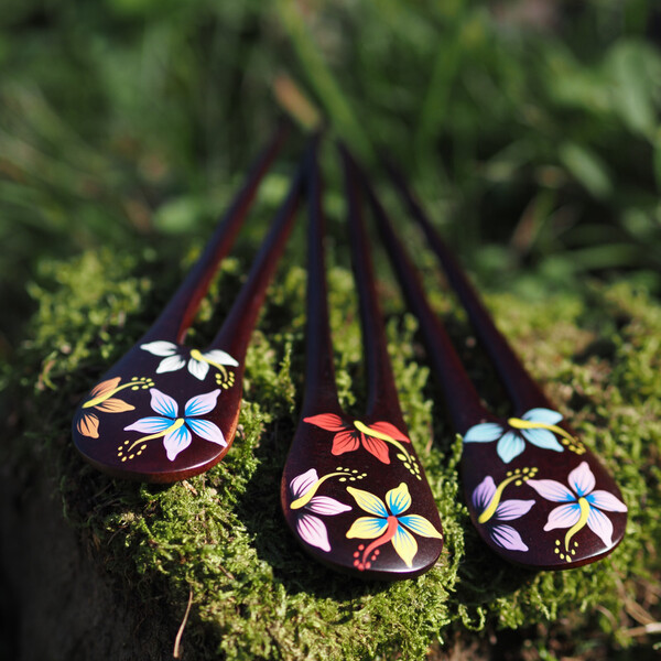 The high-quality processed wood will please every natural materials lover. Wooden hair accessories do not disrupt hair structure, have antistatic properties, and prevent breakage and damage. However, it is not recommended to expose them to moisture or use them on wet hair. It is recommended to occasionally treat the hairpin with a standard hand cream or a drop of olive oil to maintain its condition and restore its shine.